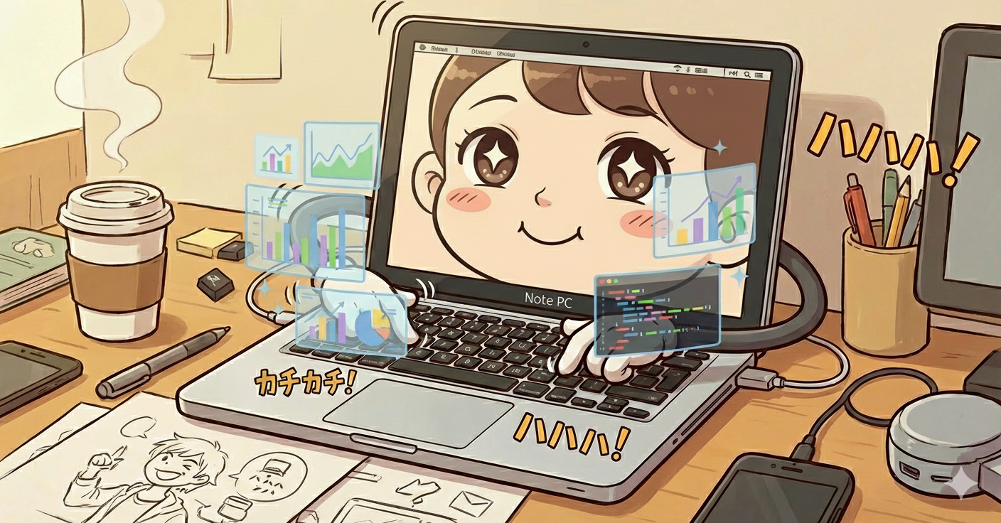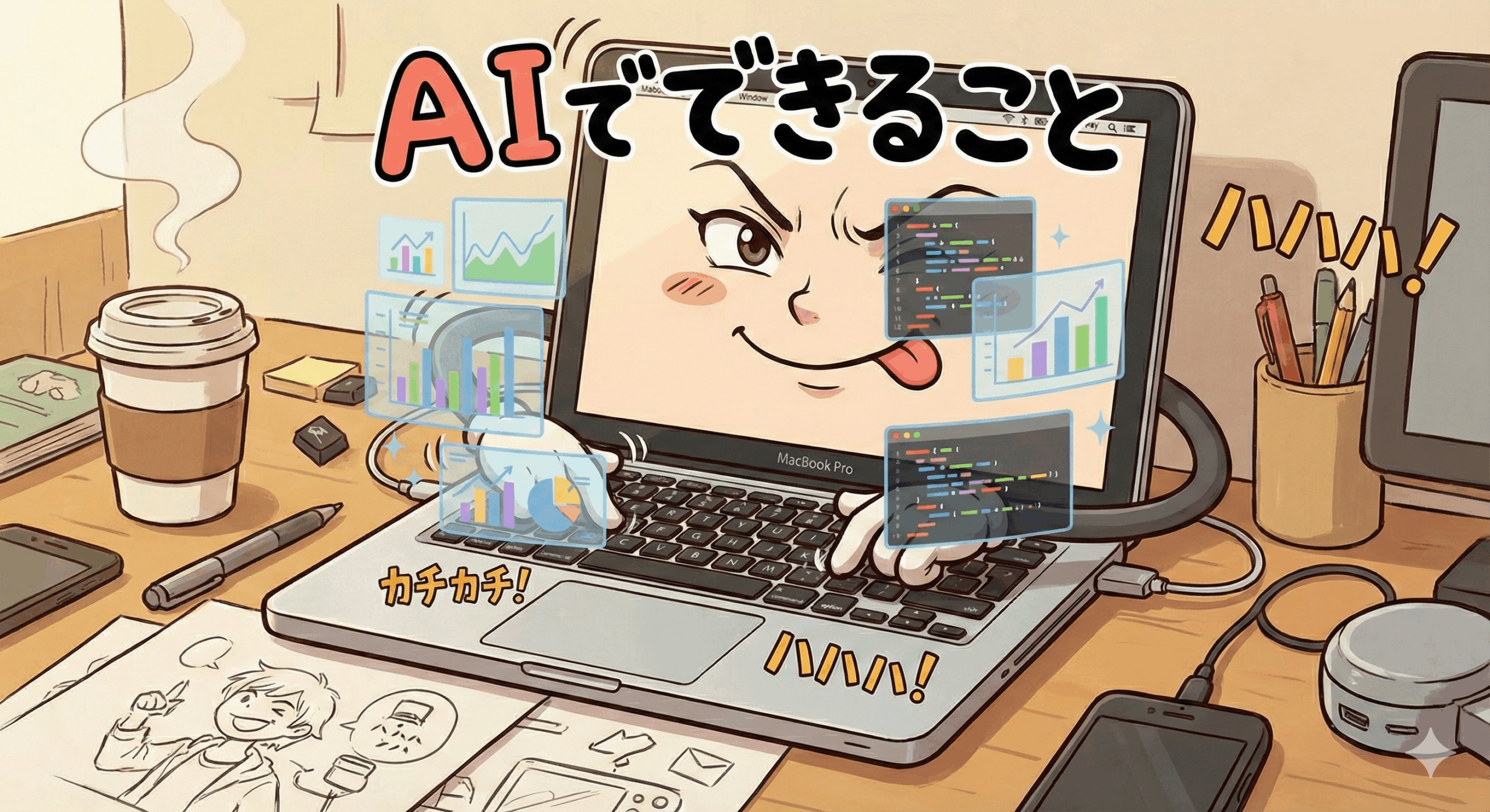 漫画に加えて、グラフやソースコードもあったほうがいい画像は「AIでできること」というタイトルのブログ記事で使いたいです